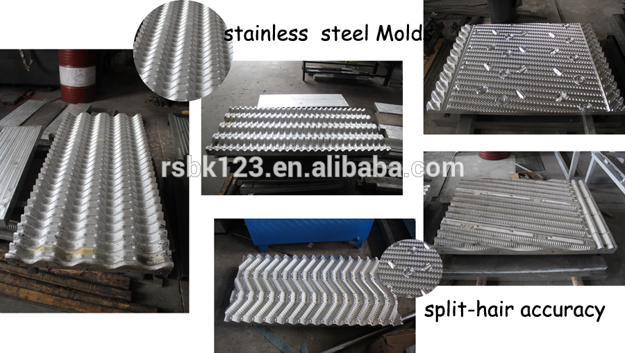 Cooling tower fill is one of the most important components for exchange of gas and water in cooling tower. The heat and resistance characteristic of the cooling tower fill are the main factors influencing the cooling efficiency. Moreover the quality of the material will influence the fill's lifetime. Our company choose the high quality fill for the cooling tower. Our cooling tower fill is with the advantages of good chemical stability, resistant acid, alkali and organic solvent corrosion, high cooling efficiency, small ventilation resistance, strong hydrophilicity, large contact area etc