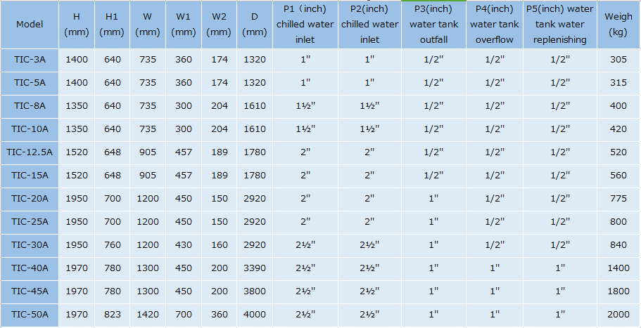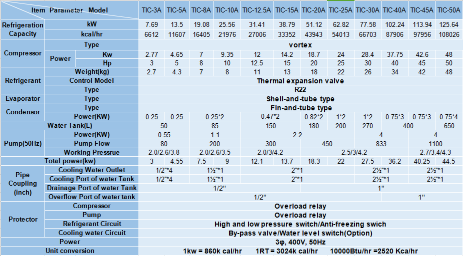 3) Environment-friendly R407 C refrigerant is optional.(Model denotes''U'', such as TIC-5A-U).