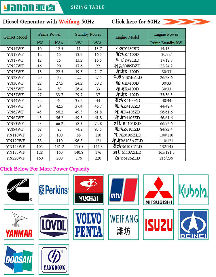 4. Radiator | 40℃ for open type, 50℃for soundproof type |