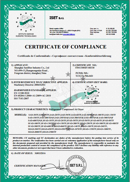4. SH seires dryer have passed latest CE certification with multiple overload protection devices congured.