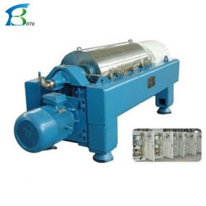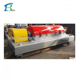 While drum and spiral are rotating fast with a certain diferential speed, material are introduced into transporting spiral interal cylinder continuously from feed price, then enter into drum after speeding up. The heavier solid phase content to the cone point of drum continuously, and discharge out of the machine from slag-dip opening. The lighter solid ohase matter from lining liquid loop,and overfiow out of drum from main opening,then discharge out of the machine from drain connection. This machine can complete feeding,separating, washing and discharging continuoudly while workin at full speed.