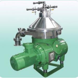 and sediment ejection hole 3 is shutted down. then, Milk to be processed are fed to the bowl from feeding pipe1, Under the effects of centrifugal force, the solids which has heavier density is collectedon the bowl wall, After a while, the opening water 7 is bumped into the opening room 5, falling the sliding piston,open the sediment ejection hole 3, impurities are desluged from the bowl. The lighter liquid (fat) flow along the inner side of the discs into the passage in the upper distributor,the lighter product(fat) is discharged from the machine by the lower centripetal pump8.The heavier liquid(skim milk) flow along another passage, discharged from the machine by the upper centripetal pump2.Thus the milk is separated well. The separator adopts self de-slugging and centripetal pump. Thus the machine can work continuously for a long time, attain good separation effects in long run.