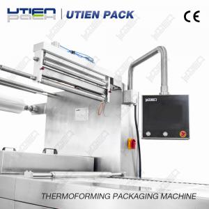 This machine is based on thermoforming technology, which heat and forming the bottom tray of the package from a roll of plastic film which is multi-layer co-extruded film. Different working section work at same time makes the procedure fast and less defects.