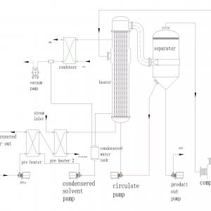 5. The evaporator is a material at low temperatures ( evaporation temperature 45ºC-75ºC )and does not generate foam under the state of evaporation, liquid evenly, do not run material, not easy to coking, minimum denaturation for heatinf material