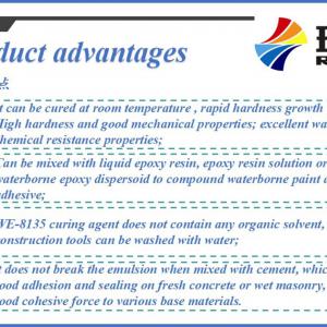 WE-8135 is a modified amine waterborne epoxy curing agent, which can be supplied in the form of about 53% water solution of solids, and is an environment-friendly waterborne green product.