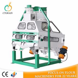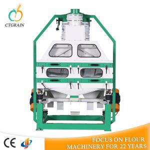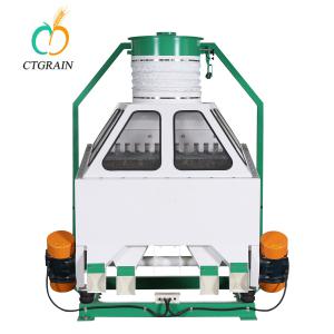 The material falls onto the guide plate from inlet and cover evenly on the entire width of the upper sieve due to the vibratory action of the machine. The combined action of the vibration and air flow make the material on the upper sieve classified automatically according to its specific gravity and granular size. Light material become overtails of the upper sieve and discharged out of the machine from the machine tail. More light material like straw and dust is taken away from aspiration outlet. Heavy material together with stones and sand falls onto the lower sieve through the upper sieve. As the action of the machine vibration, air flow and friction, the heavy material moves towards the tail of the machine and discharged from the tail outlet while sand and stones move towards the head of the machine and discharged from the stone outlet. Through the observation windows, operator can directly observe the effect of classifying and de-stoning.