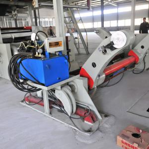2.Corrugated paperboard production line is compose of shaftless mill roll stand ,fingerless type single facer(vacuum suction type), preheater, over bridge, gluer machine, double facer, cut off machine, slitter scorer machine, stacker and glue making system.