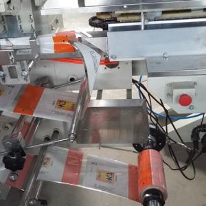 This packing machine is suitable for fast packaging of the biscuit, wafer and other slice, round and regular items without tray.