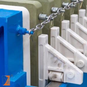 Once open filter press uses longer cylinder and beams. The plates are connected by stainless steel chains. While discharging, all plates will be pulled open to discharge all cakes at one time. Companying with vibration device, it can discharge cakes perfectly.