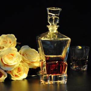 This whiskey glass bottles with glass lid is made of high quality glass, it's widely to be applied to hotel, home as whiskey or wine decanter, its unique appearance is popular in global markets.