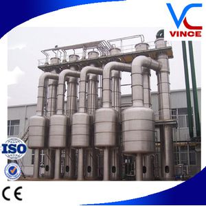 It consists of (first-effect, second-effect, third-effect)separators and evaporators and preheaters,condenser and vaccum pump, feeding pump,circulation pump, discharge pump, condensed water pump and system pipe fittings, etc. Equiped wit CIP spraying cleaning ball, vacuum gauge, thermometer,pressure gauge,and so on.