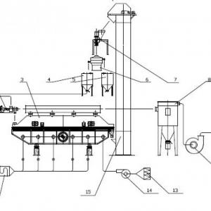 3. Weighting and burdening → mixing (GHL high speed mixing granulator) → granulating (XL-300 rotary granulating machine) → shot blasting (Whether it is needed or not is accordance with the operation process) → drying (FG boiling dryer or vibration fluidized bed dryer) → sieving (ZS vibrating screen) → packaging