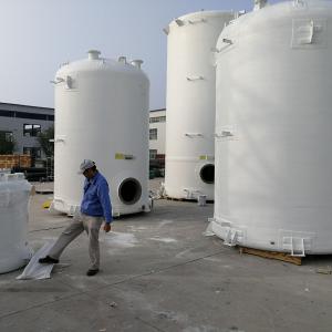HBYX FRP (GRP) and dual laminate storage tanks and silos can be equipped with numerous accessories such as valves, level indicators, load cells, dust filters, insulation and heat tracing systems, reinforcement / vacuum rings, steel or FRP supports, platforms or anti slip layers, vent scrubbers, ladders, railings, walkways, pumps.