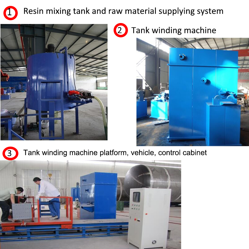 2) The tank winding machine,include the winding platform,the venicle with the resin tank,the main machine head,the triangular support,the yarn stand,the support ring.