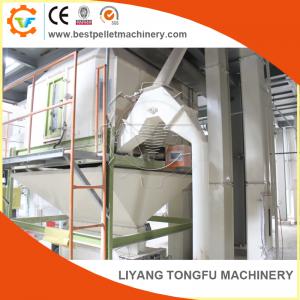 Pellets are conveyed through a sieve to remove impurity and deformed pellets. Fines and deformed pellets are recycled back to bins before the pellet mill. Sieved pellet with different sizes are stored in individual bins.