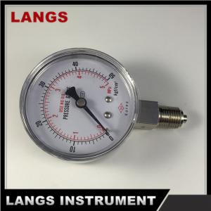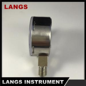 041 high level Acrylic pressure gauges air gauge Stainless SteelSize: 2.5"Brand: LangsOriginal: China, Zhejiang Thread: 1/4"BSPMounting: BottomCase: black SteelMovement: Stainless Steel