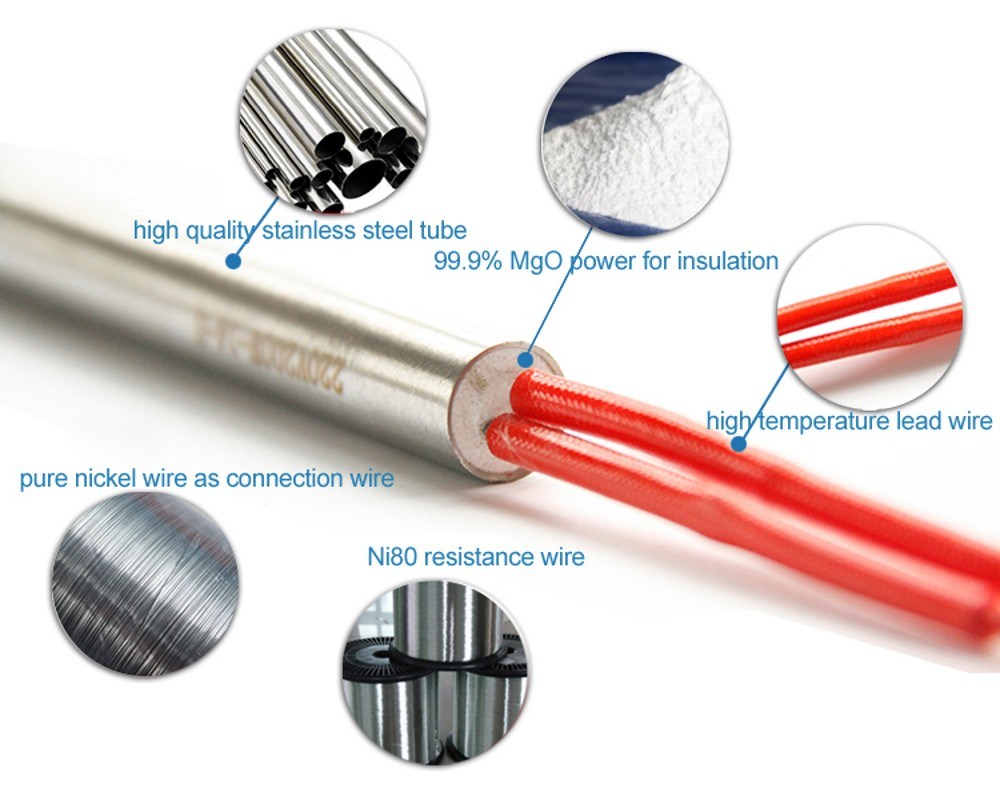 Cartridge heater has many types, this products is stainess steel heating element, mainly used for 3D print,packing machine,labelling machines and hot stamping and so on. also we have other heating element, for details pls contact us freely.