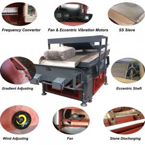 This blowying type gravity destoner is equiped with frequency conversion control equipment,which can be subtle regulation,even if the proporation of the difference is very small, stones also be separated.
