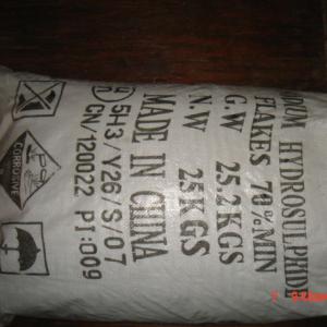 Sodium Hydrosulphide, colorless orthogonal crystal with properties of deliquescence, Can be dissolved in water or alcohol. It becomes black liquid when the temperature is abour 350° C. Sodium hydrosulphide for industrial use is generally liquor in orange or yellow, solid. Light yellow or orange if it is flakes.