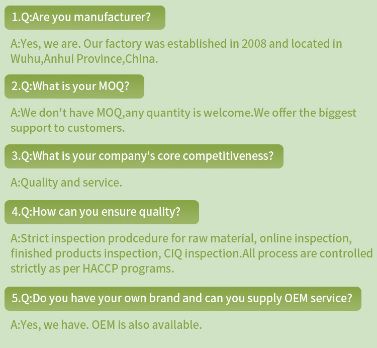 Wuhu Deli Foods Co.,Ltd. is an export-priented manufacturer specialize in production, marking and developing of food stuffs. It established in 2008, located in Wuhu City,Anhui Province.The factory cover 50.000 Square meters and have separated production lines for pure honey and the syrup products. The factory also passed the certification of ISO9001,ISO22000,HACCP and FDA.