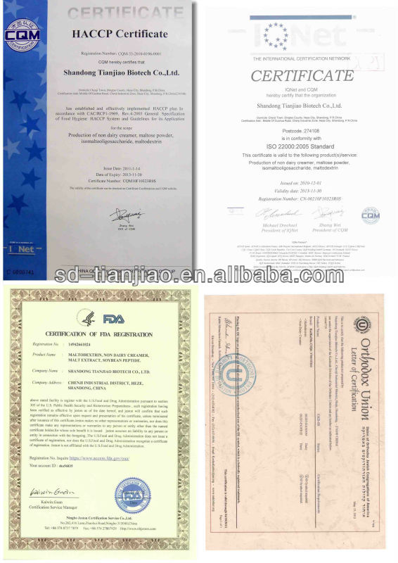 CERTIFICATE:HALAL,KOSHER,ISO22000,FDA