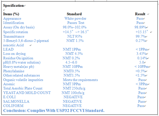 5. The property of Aspartame Powder is similar to that of high maltose syrup, so that it is easy to be accepted by the customers.