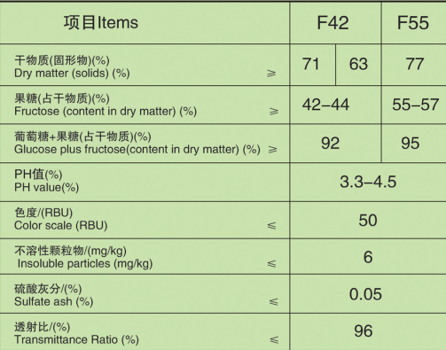 Fructose rice syrup is an important food additive, and it is made from plant starch hydrolyzation and starch sugar crystal isomerization. It is mainly composed of fructose and glucose. Its sweetness is similar to that of sucrose, fructose syrup also has its own features, so its application field is wider than that of sucrose. It is widely used in the food industry, health care, family seasoning, daily chemical industry and other feilds. Usually, manufactures use corn as its raw material, so it is also called high fructose corn syrup. But we select 100% imported GMO-FREE Thai rice as our raw material instead of corn. It is more safe with lower allergy. Fructose syrup is also divided into different types according to its DE value and brix. F42 fructose syrup refers to that the fructose content is 42% of the dry matter.
