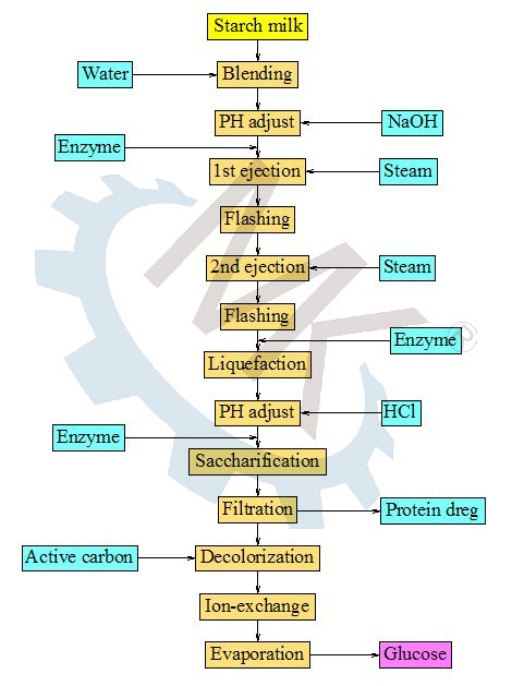 (1) Starch milk adjustment: Starch milk coming from starch plant is adjusted to DS28-32% and proper PH and temperature. Or mix the dry starch with water to reach above condition for next section.