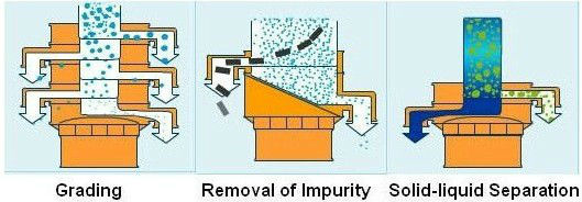 Many kinds of the materials within 0~500 mesh like dry, wet, refined, coarse, heavy and light as well as those within 0~600 mesh like liquid and pasty materials can be screened by the machines. Details are as follows: