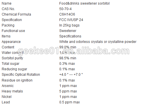 Other Name: Clucitol; D-Glucitol; D-Sorbit; D-Sorbitol; Glucitol; Gulitol; L-gulitol; Sorbite