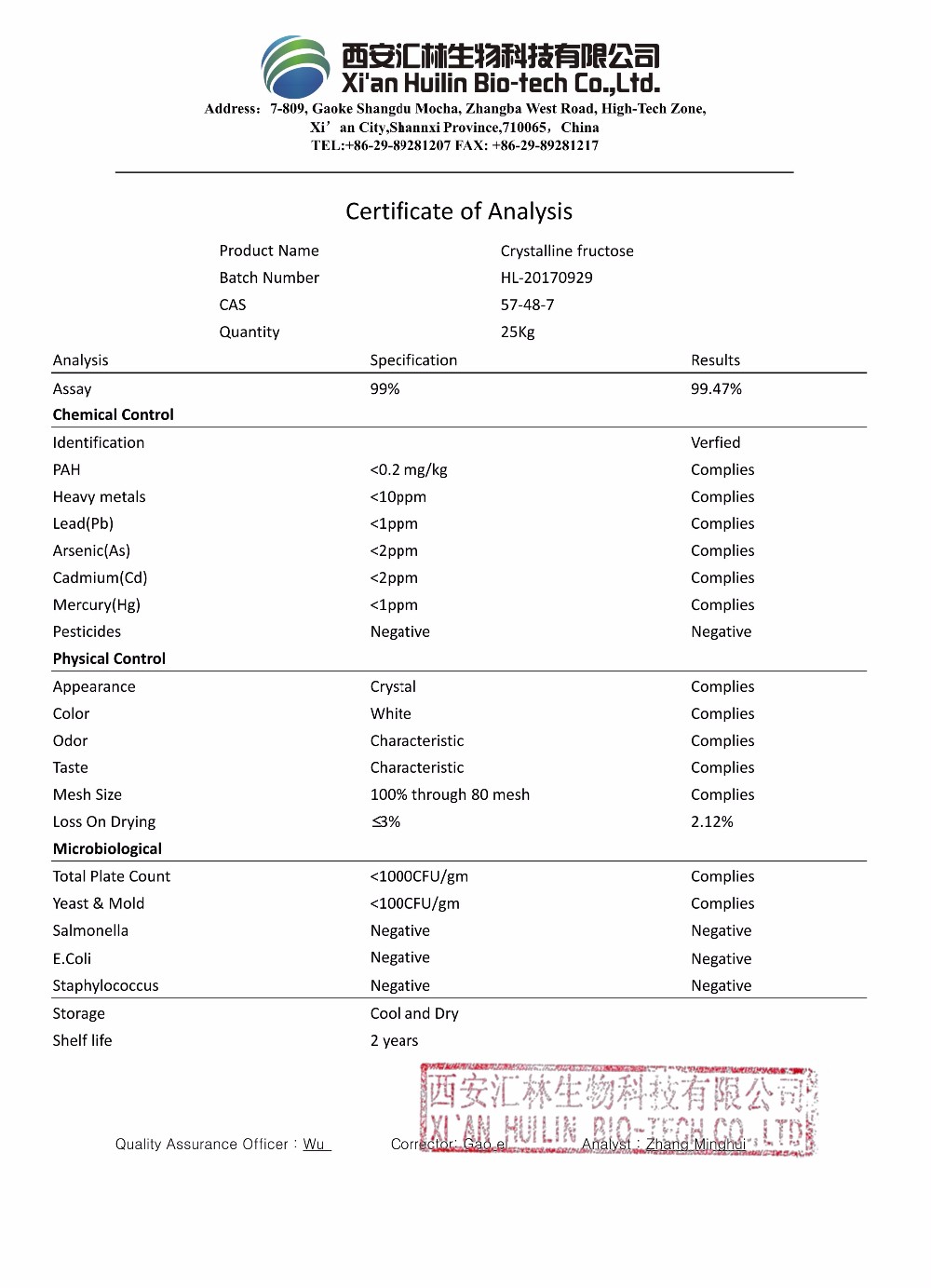 | Product name | Crystalline fructose |
