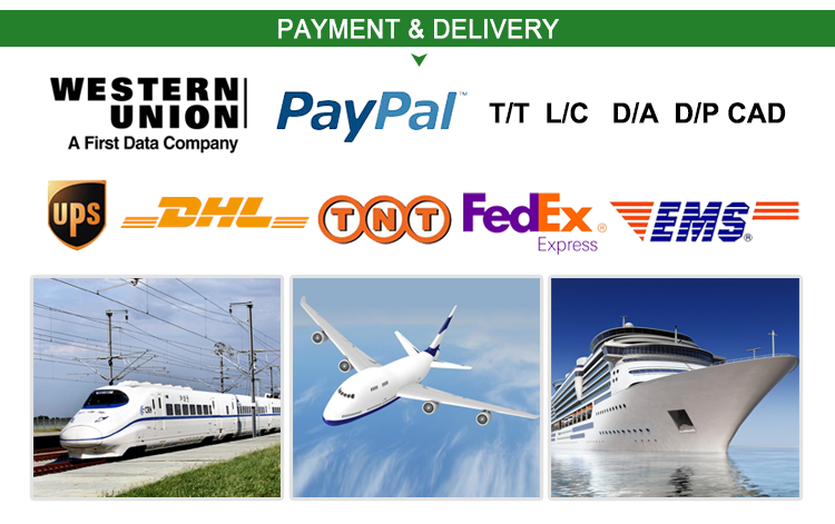 A: Proforma invoice will be sent first after confirmation of order, enclosed our bank information. Payment by T/T, Western Union or Paypal or Escrow(Alibaba).