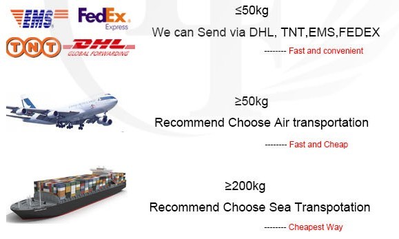 A: We usually ship by DHL, UPS, FedEx or TNT. It usually takes 3-5 days to arrive. Airline and sea shipping also optional.