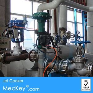 (2) Liquefaction: Starch milk is sent to buffer tank then liquefied by jet cooker with the aid of liquefaction enzyme. 2 times jet cooking is needed for better reaction. Then the material is sent to the flash for cooling then to the neutralization tank for suitable PH value.