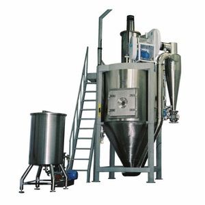At a high speed of drying, after spraying of the material liquid, the surface area will be increased greatly. In the hot air flow, 95%-98% of water can be evaporated at a moment. The time of completing the drying needs only several seconds.