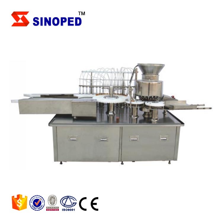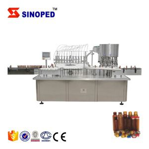 This oral liquid filling and capping machine is our traditional product, and as to customers’ needs, we had some innovation for this machine. The positioning & tracing filling are adopted for 2/4/12/16 needles filling & capping machine, and the productivity can satisfy the user. The pass rate is high. And as to customers’ requirement, the washing/ drying linkage production line or unit machine can be connected.