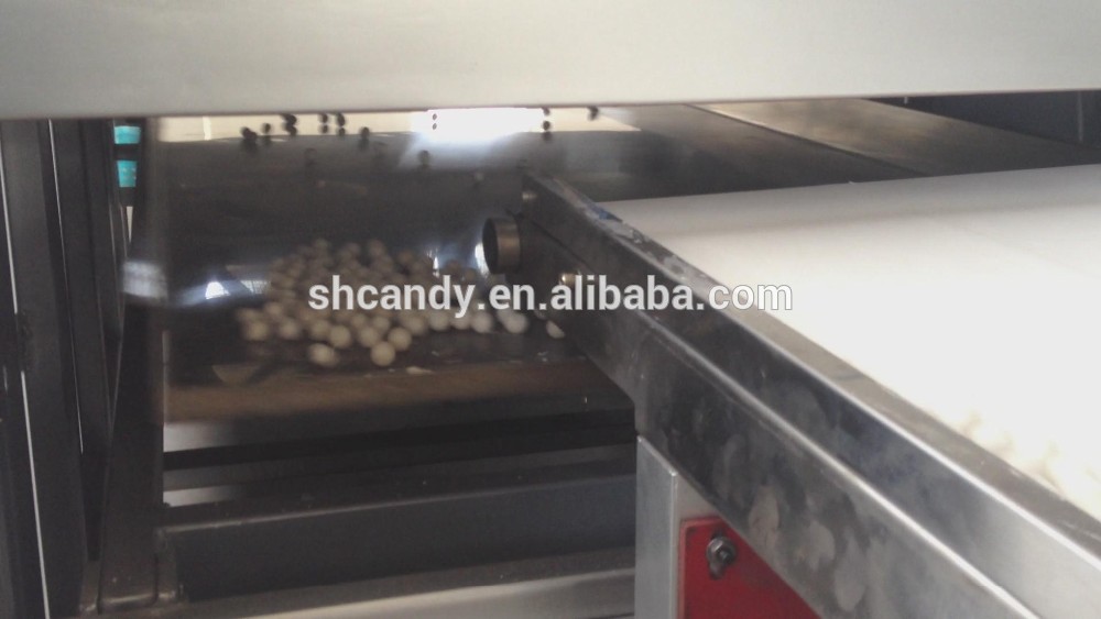After been shaped from moulds, ball gum come out from forming machine, sending to vibrating cooling machine through conveyor.
