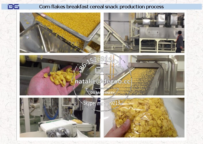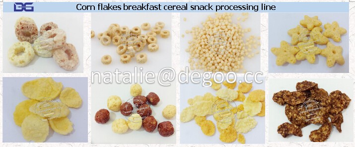 Samples made by corn flakes breakfast cereal snacks proessling line