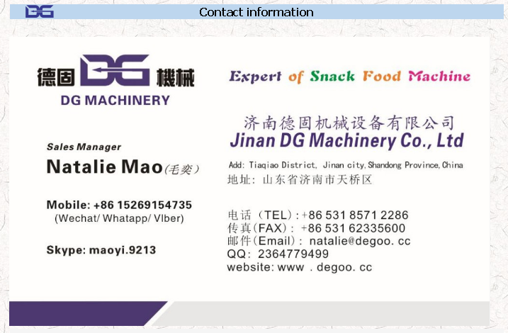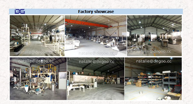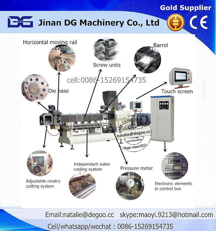 Jinan DG machinery co.,ltd ,is not only professional manufacturer of advanced and efficient extrusion equipment,but also the design expert of system integration.We provide not only the entire machinery and production plan,but also can equip production system to meet client’s personalized require.We own a lot of patents ,proprietary technology and breakthrough both in equipment and process flowing crafts aspects.We have a test center which combines experiments,demonstration and training in one facility.We can test new technical application experiments according to customers requires.We are sure that you can benefit from our professional services.Our main target is to provide you with professional,attentive ,value-added service to enable you to produce an excellent food.So both of us can share a long lasting success to achieve a win-win future.