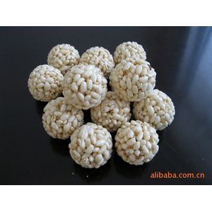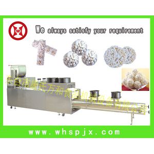 Puffing machine→Sugar cooking machine→mixing machine→rice ball sugar forming&cooling conveyor →packing machine