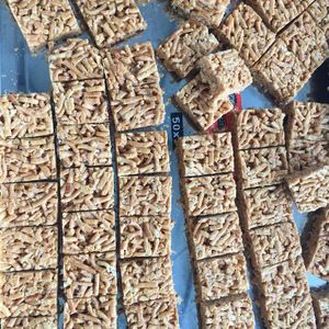 Snacks' automatic cutting and processing: Puffed rice candy, rice crispy candy, peanut candy, seed candy and sesame candy and Caramel Treats.
