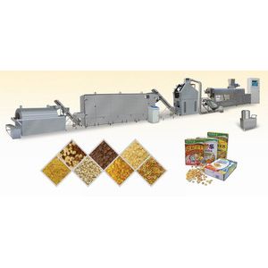 is developed and manufactured on the basis of the international advanced extruder technology,which is named corn flakes breakfast processing line.This line consists of mixing,boiling,pressing,drying and inflating,which can be finished in one time,the level of its automation is very high.