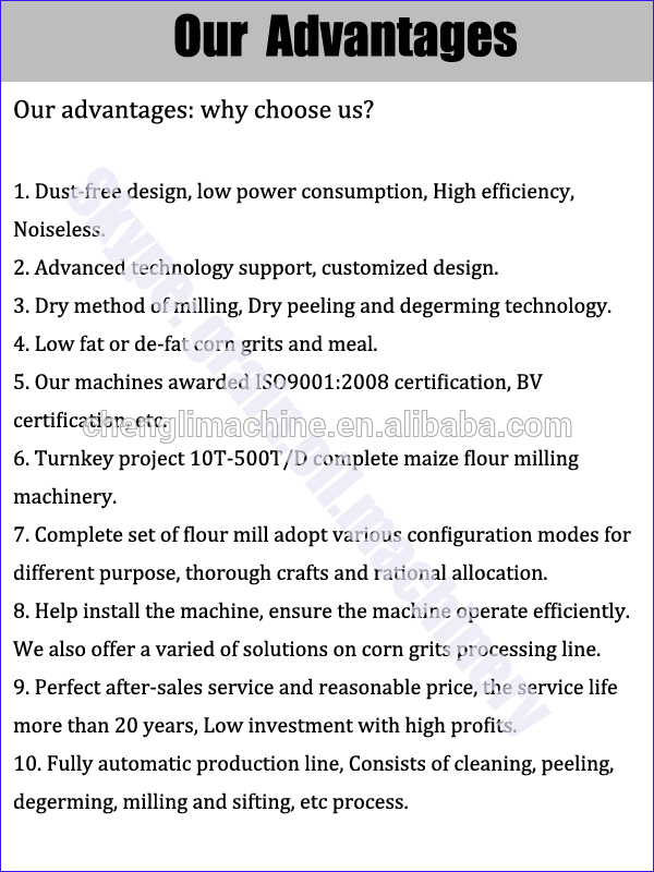 We are the professional manufacturer in China, our company can supply the technology and service on complete set of corn deep-processing machine, complete set of flour deep milling set, single corn peeling machine, single corn grinding machine, single corn polishing machine, single different kinds of pulverizer, single different kinds of sieve and plansifter, single centrifugal ventilator and other machinery parts. We can supply the different designs with different cost to meet different buyer's request.