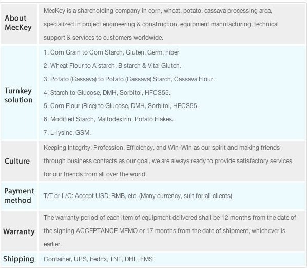 (1) Starch milk adjustment: Starch milk coming from starch plant is adjusted to DS28-32% and proper PH and temperature. Or mix the dry starch with water to reach above condition for next section.