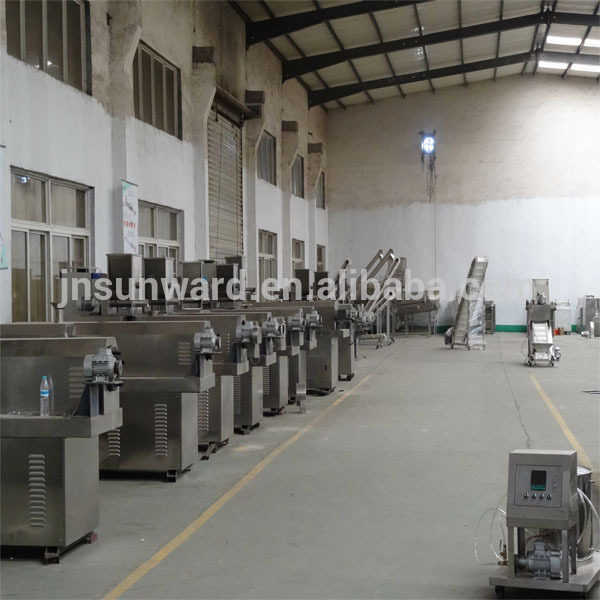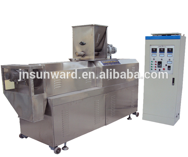 4.This extruder can produce all kinds of inflating foodstuffs, rice bread, core snacks, crackers, gruels, nutrient-flour, and baby food and so on.