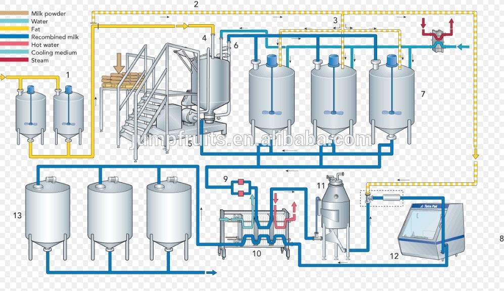 In the batching process, milk powder production process, in addition to a few varieties (such as whole milk powder, skim milk powder), must go through the ingredients process, the proportion of ingredients according to product requirements. The equipment used in the dosing consists mainly of batching cylinders, powder mixers and heaters. According to the requirements of the formula, the required added microorganisms, trace elements, and various accessories are added as an ingredient.