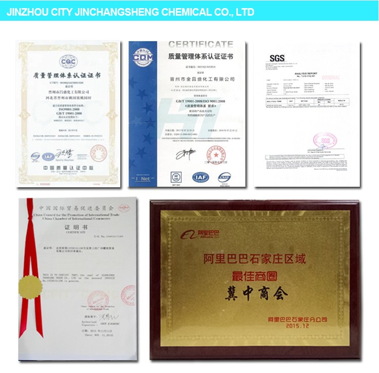 Jinzhou City Jinchangsheng Chemical Co. Ltd had passed ISO9001 Certification in 2008 and had