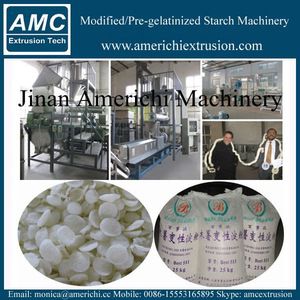 New tech modified corn starch production plant/processing line can product Denatured Starch, Pre-gelatinized starch is an effective and economical fluid loss agent in water based drilling fluids, which is a starch derivative. It is not bacterial degradation when at 120°C, environmentally acceptable and non-toxic. Modified Starch can produce a thin, slick, tough filter cake and promotes faster penetration rates with reducer friction. It can be used in all kinds of drilling fluid system. Pre-gelatinized starch is also sometimes "pregelatinized" to make them easier to dissolve during product manufacture. Modified starch is widely used in oil drilling, textile, paper and food industries.