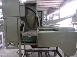 After pressing the de-watered cassava mash is a solid cake which has to be broken up and sifted to reomve the large lumps to obtain an homogenous product. Uniform particle size is important because it makes for a more uniform drying of individual particles, smaller particles taking less time and less energy in drying.