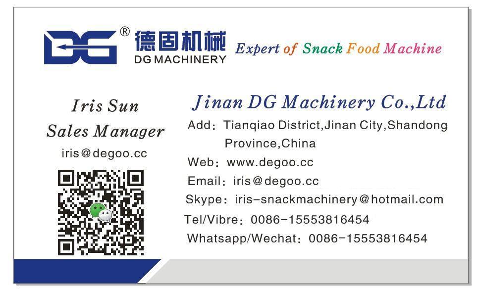 | Skype | Iris Jinan DG company or iris-snackmachinery(at)hotmail.com |